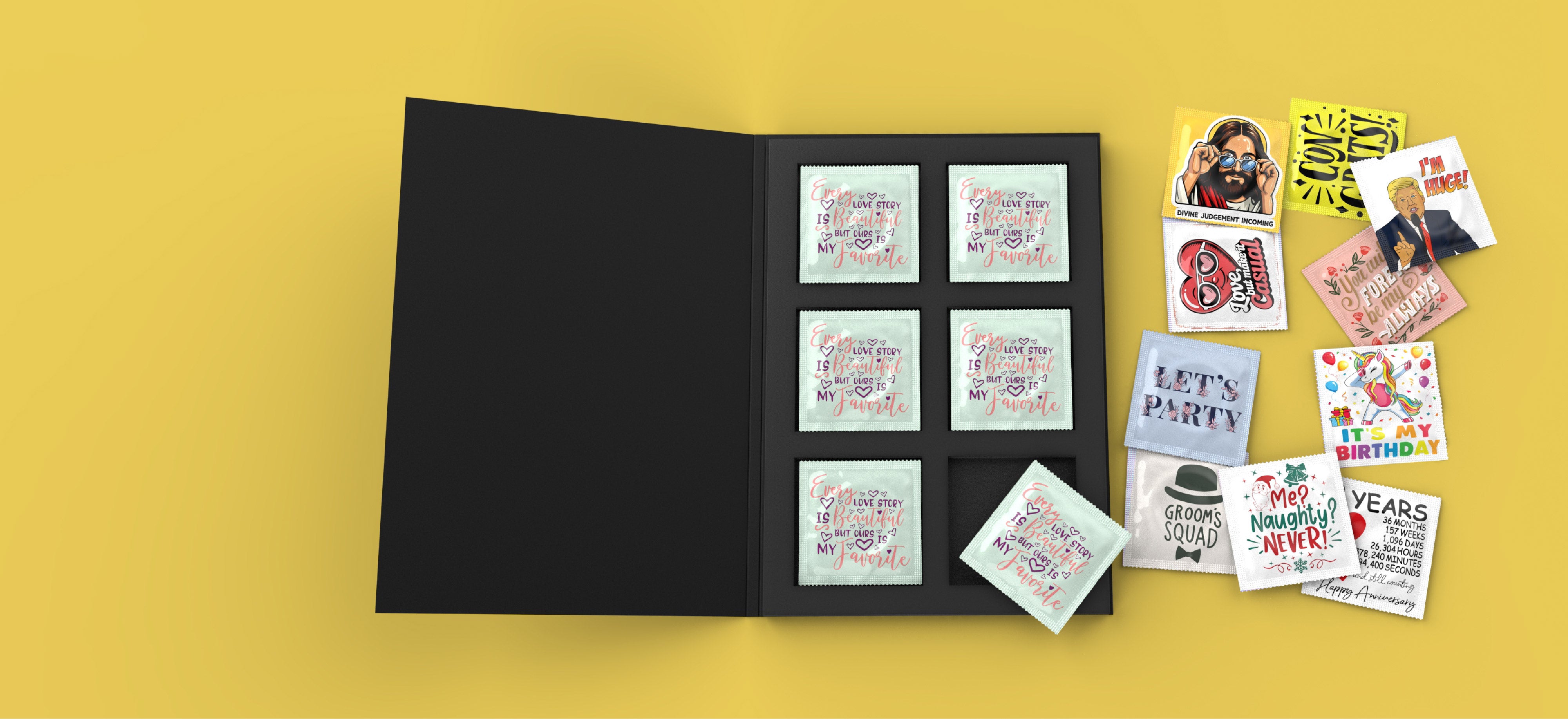 These high-quality custom condoms allow you to give your partner a cheeky and unforgettable anniversary surprise.